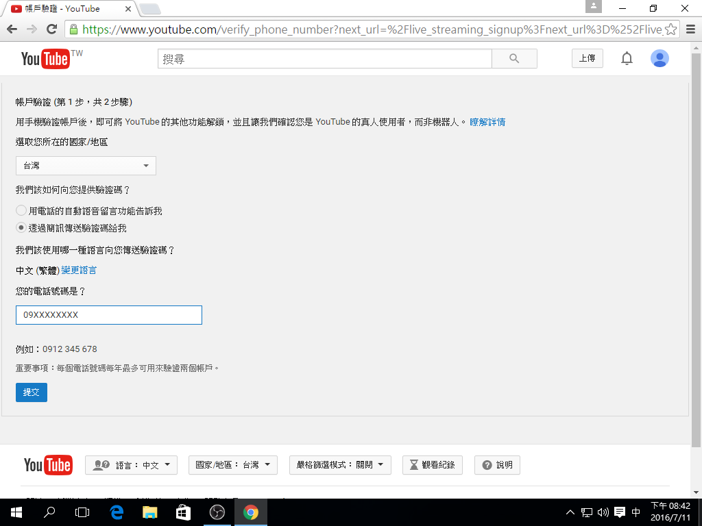 驗證帳戶是真人使用者,而非機器人,選擇簡訊方式